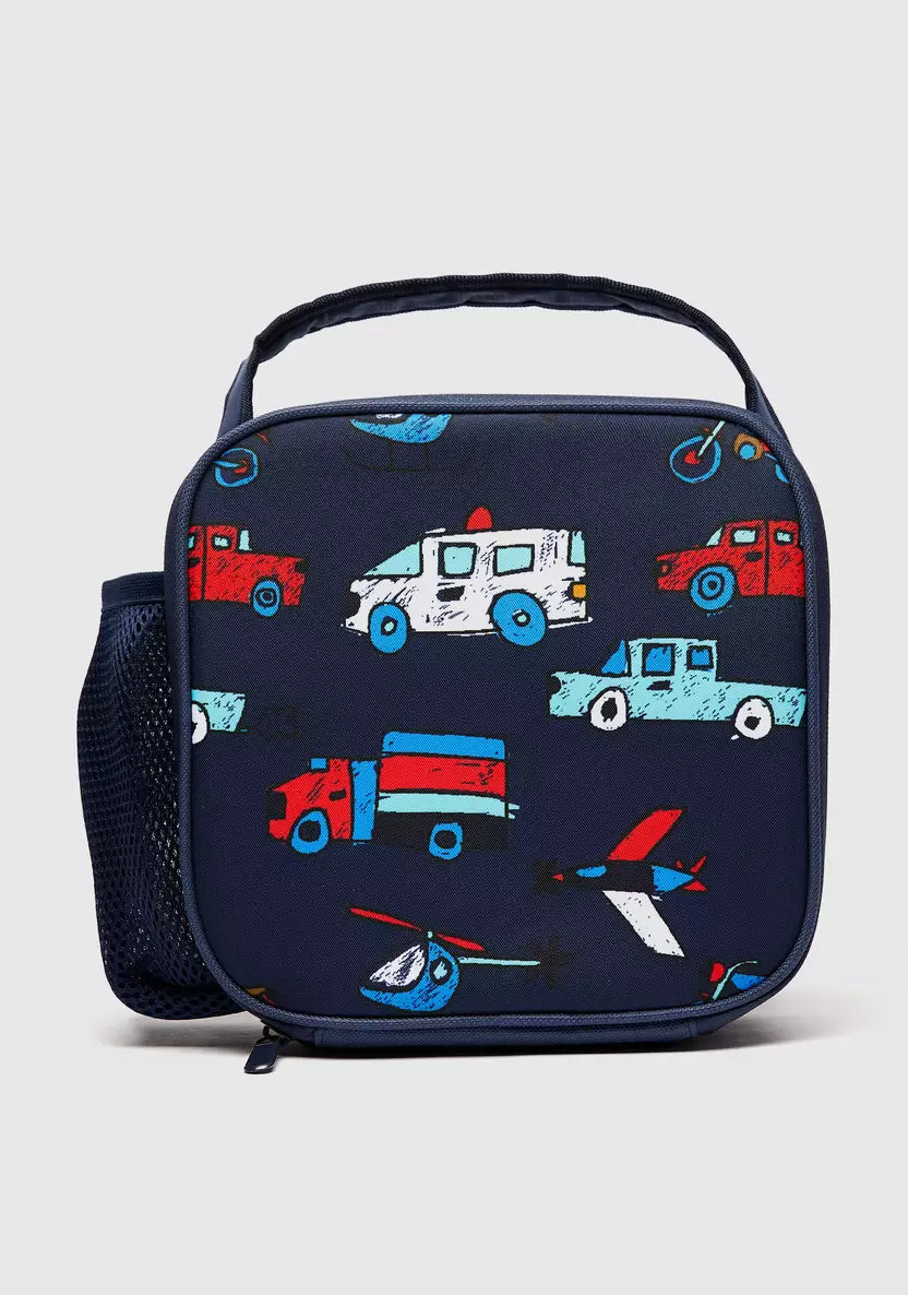 Description: Presenting playful vehicle and airplane print, this lunch bag is a delightful pick...