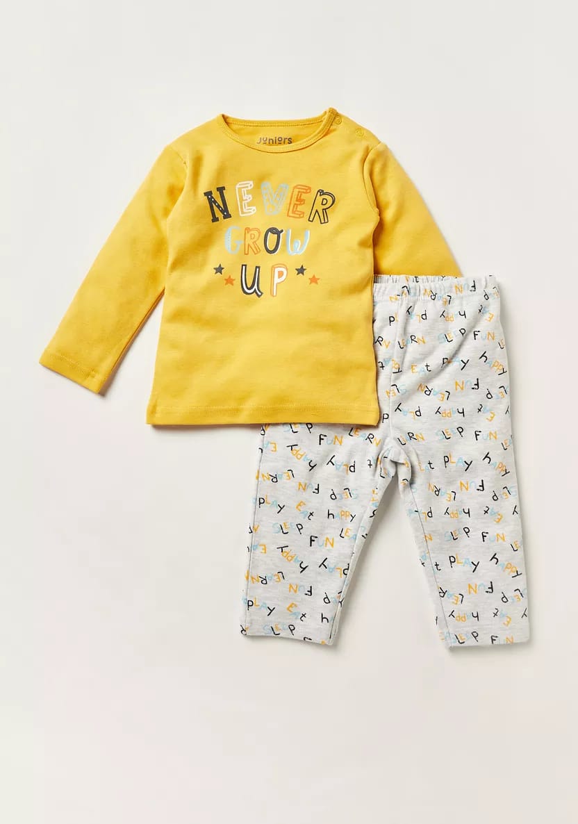 The "Juniors Shirt and Trouser Suit with Slogan" for infants aged 18-24 months is a...