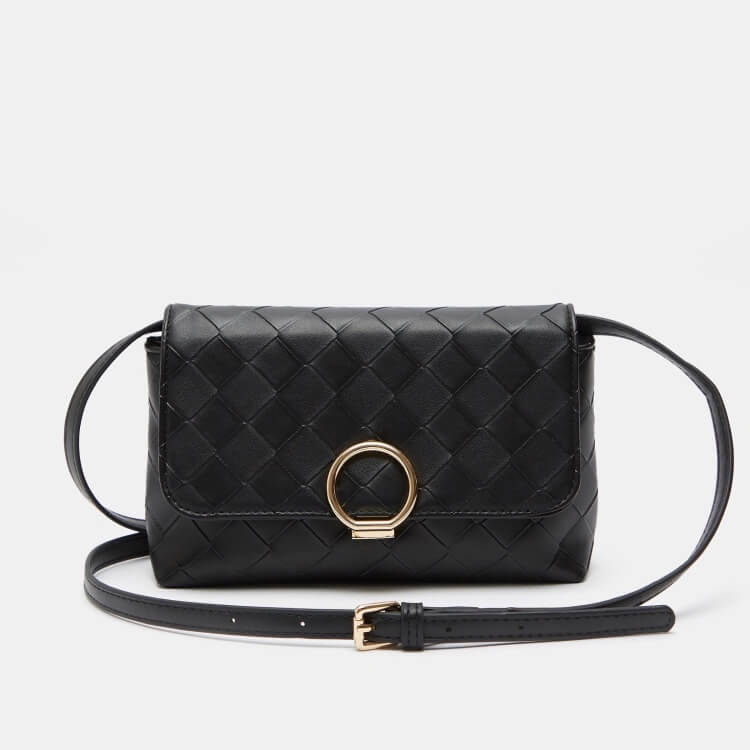 Shoexpress Woven Satchel Bag with Shoulder Strap Black