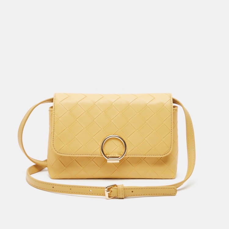 Shoexpress Woven Satchel Bag with Shoulder Strap Mustard