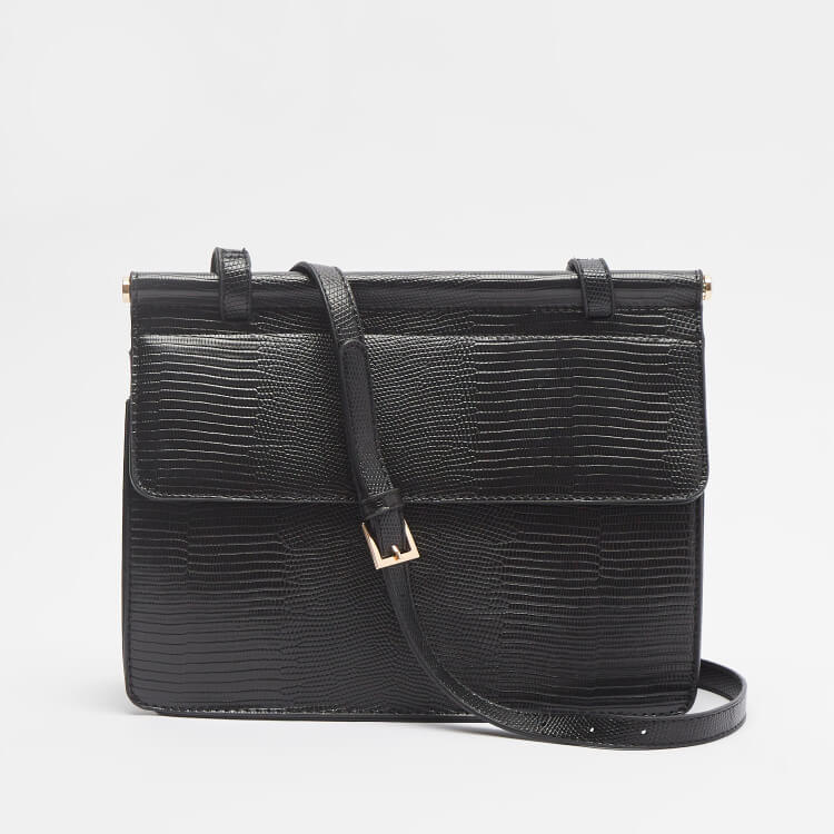 Shoexpress Animal Textured Crossbody Bag with Adjustable Straps Black
