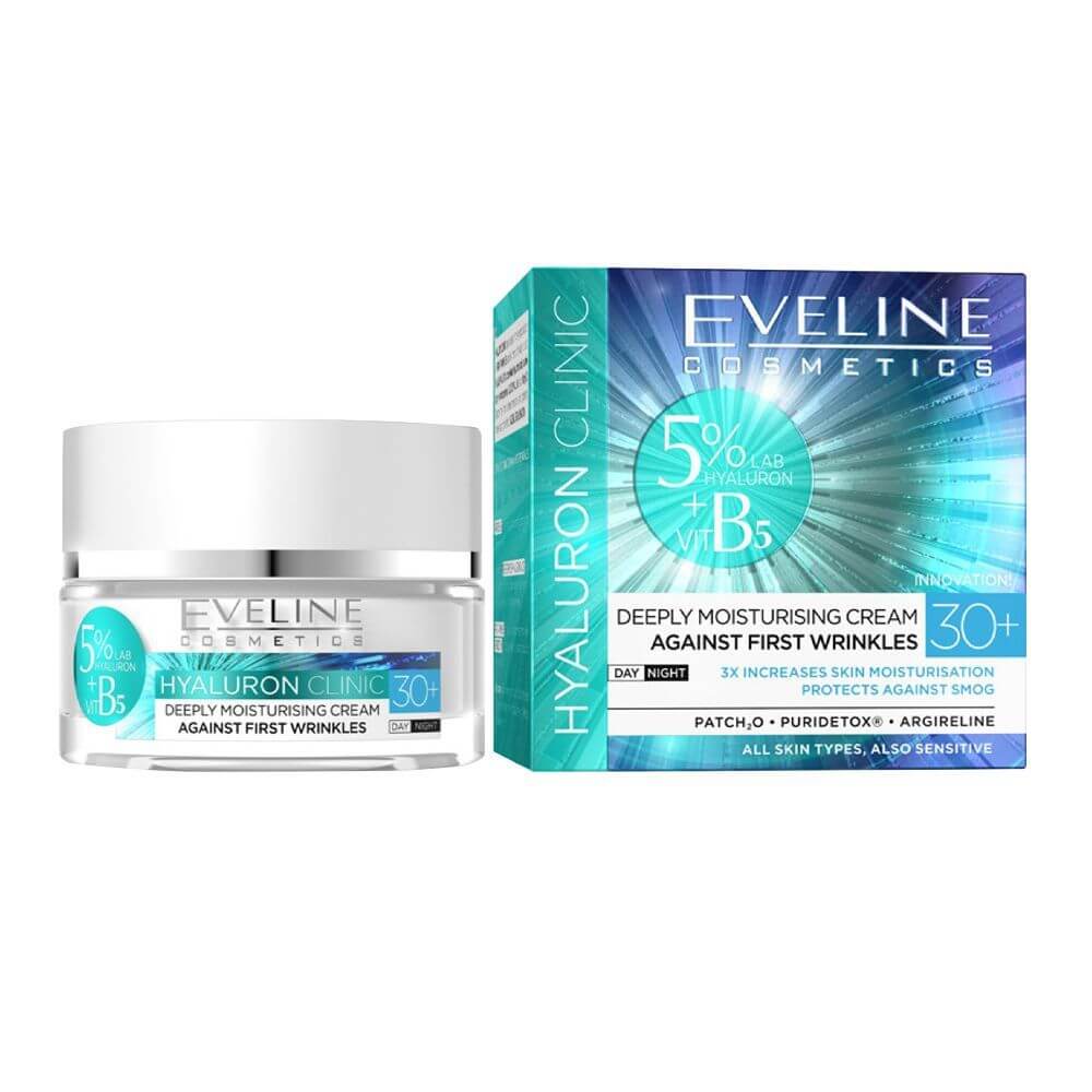 Eveline Hyaluron Clinic 30+ Day And Night Cream 50ml DEEPLY MOISTURISING CREAM AGAINST FIRST WRINKLES...