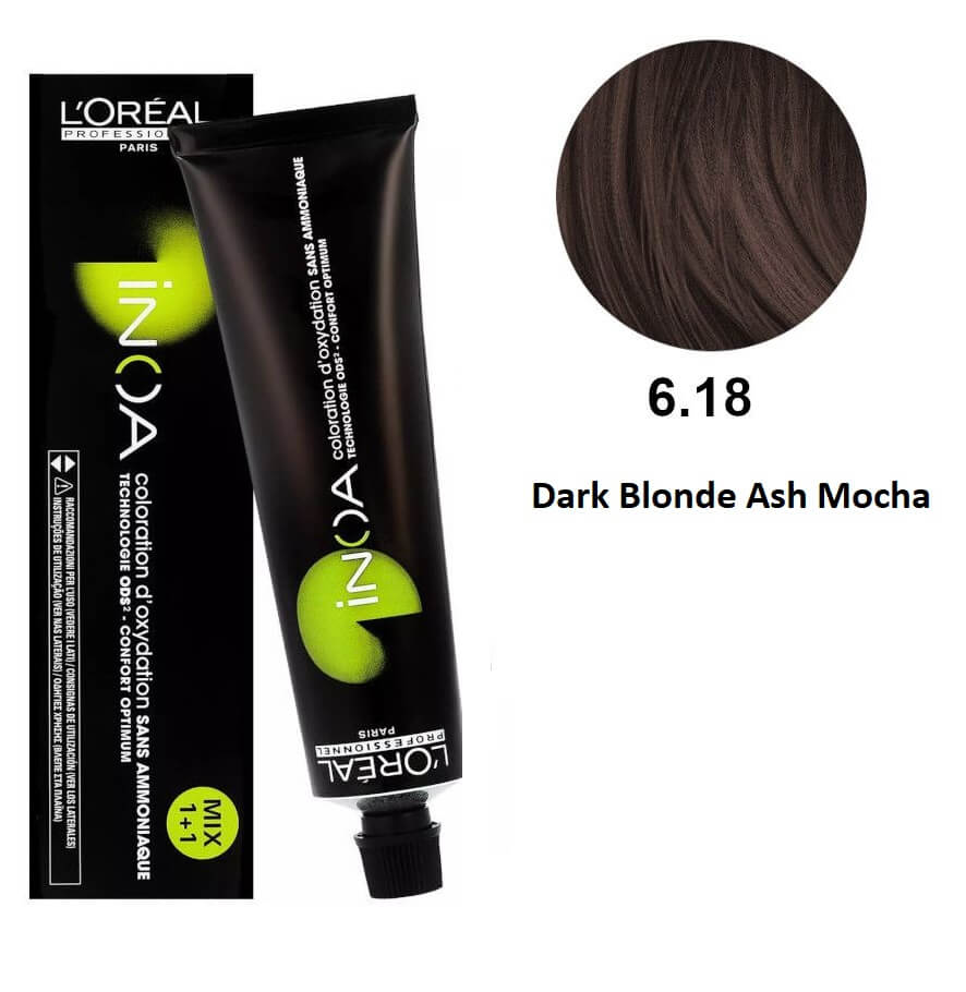 Loreal Professional Hair Color Inoa 6.18 Dark Blonde Ash Mocha 60g