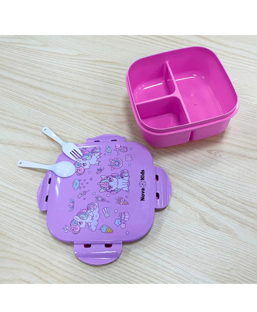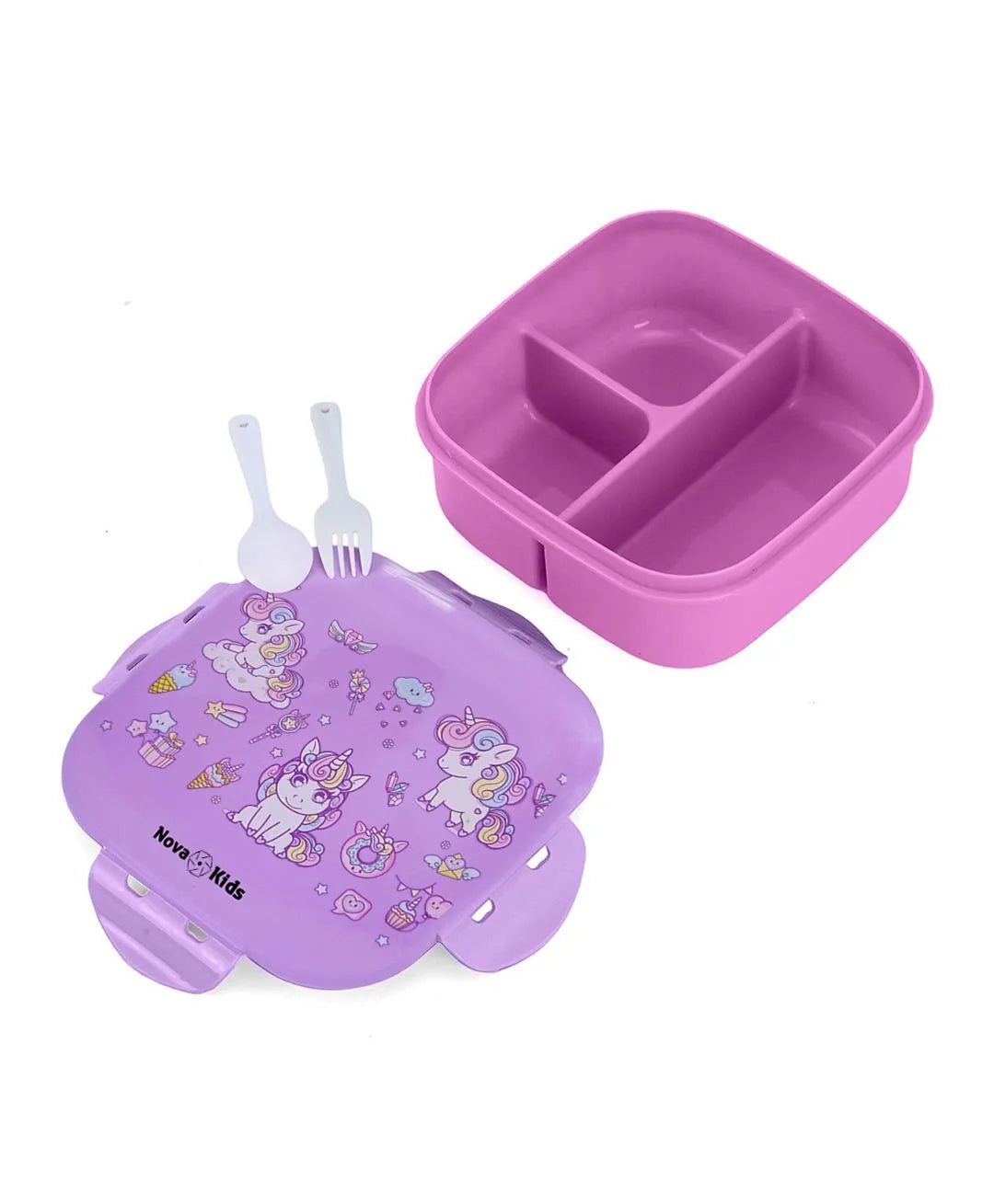Nova Unicorn Purple Bento Lunch Box – 1000ml, Leakproof with Cutlery for Kids