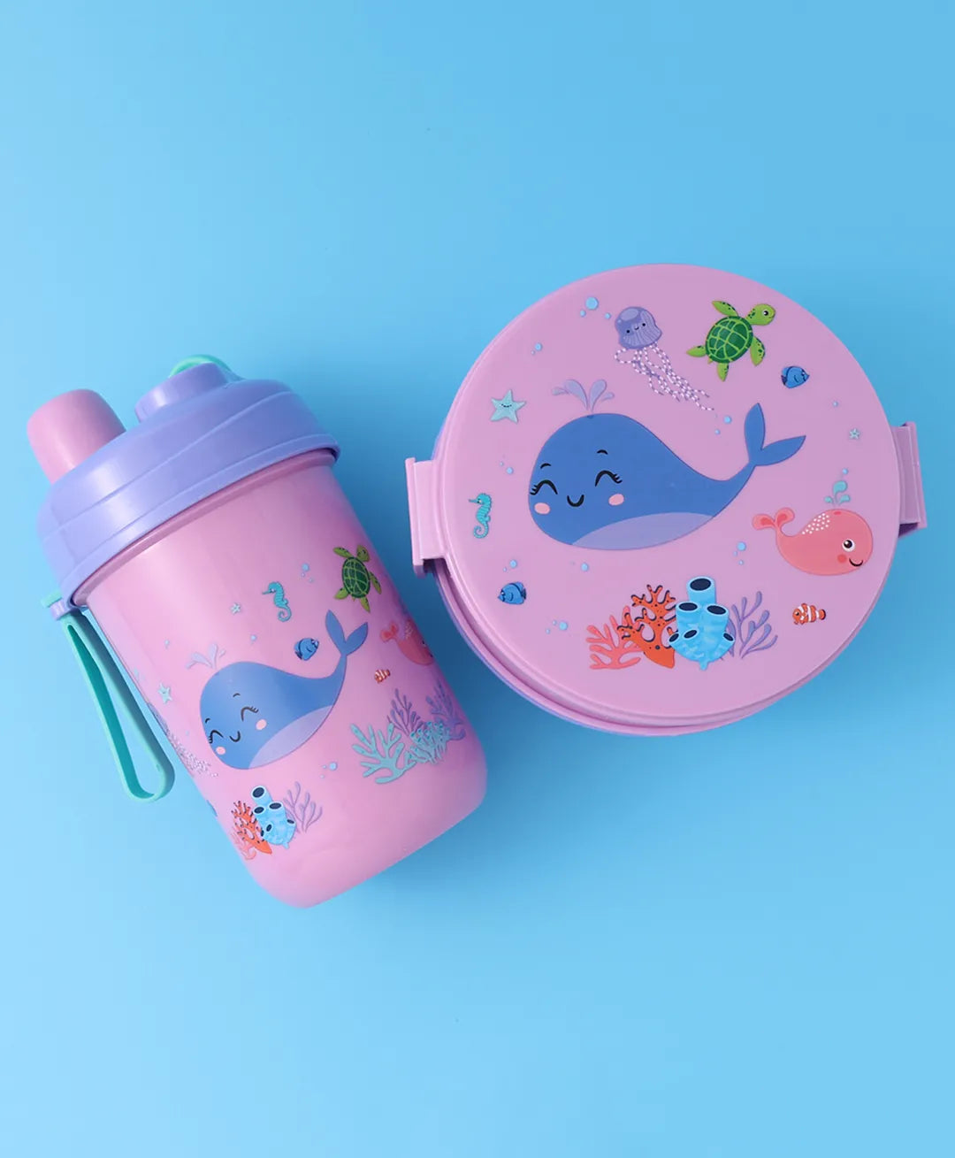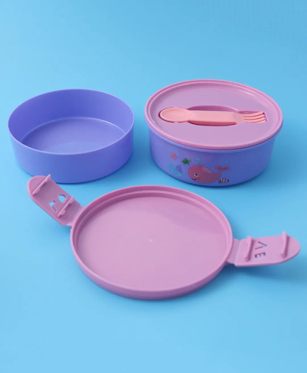 Purple & Pink Sea Themed Lunch Box Set – With Bottle, Utensils, Double Containers, Carry Strap