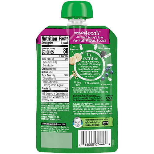 Gerber Organic Banana Blueberry Blackberry Oatmeal 99g