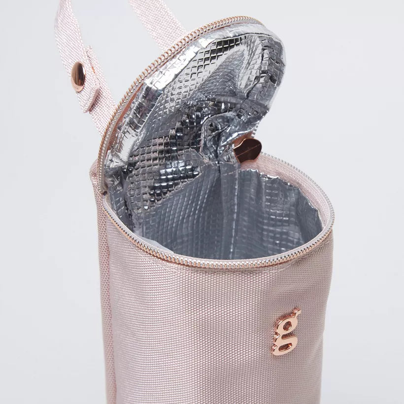 Keep your baby's feeding bottles warm for longer periods of time while on the go with this Giggles insulated bottle cover. It has a charming logo detail in front. The bottle cover comes with an easy-to-carry strap.