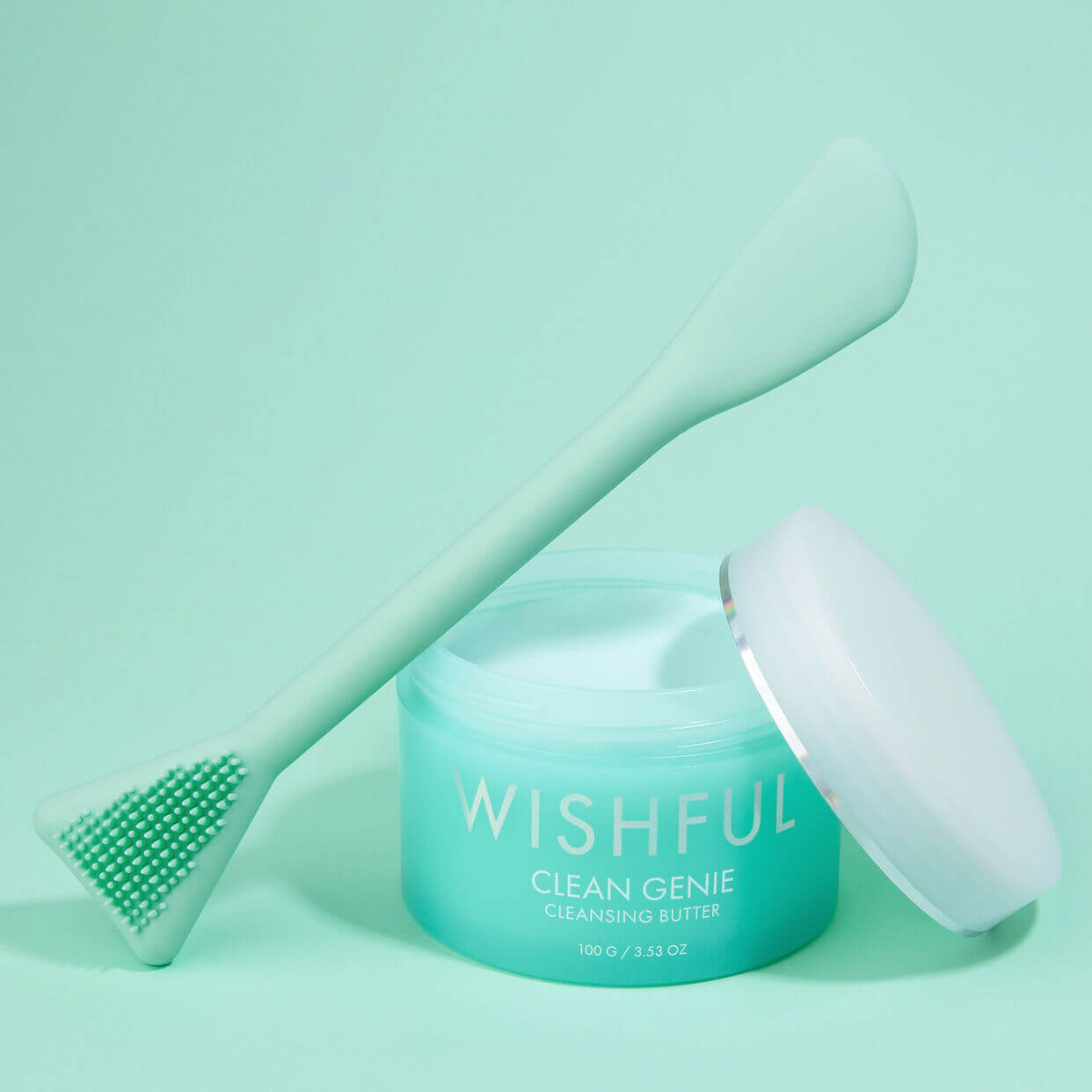 This patent-pending dual-ended silicone brush and spatula was specifically designed for the most effective first cleanse in your double cleanse routine. Let it swipe on Clean Genie Cleansing Butter across the face, allowing it to melt makeup, dirt & grime