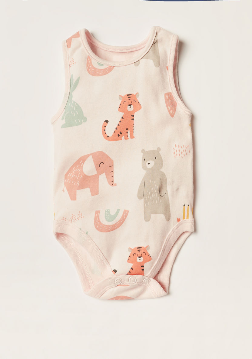 Juniors 5 Packed Sleeveless Body Suits - Animals 0-3 M