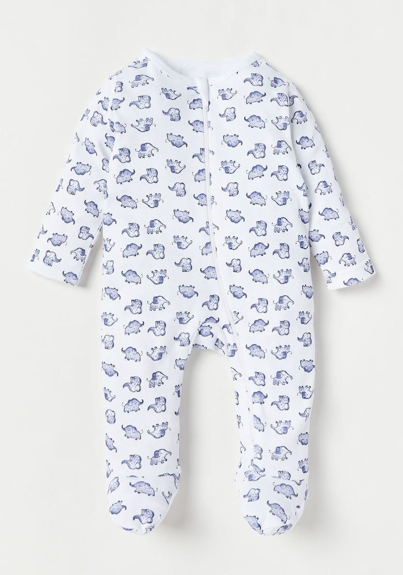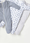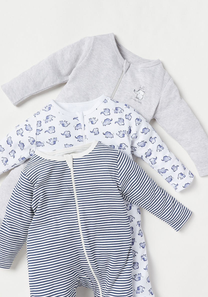 Juniors Pack of 3 Closed Feet Sleep Suit - Zipper Elephant 0-3 M