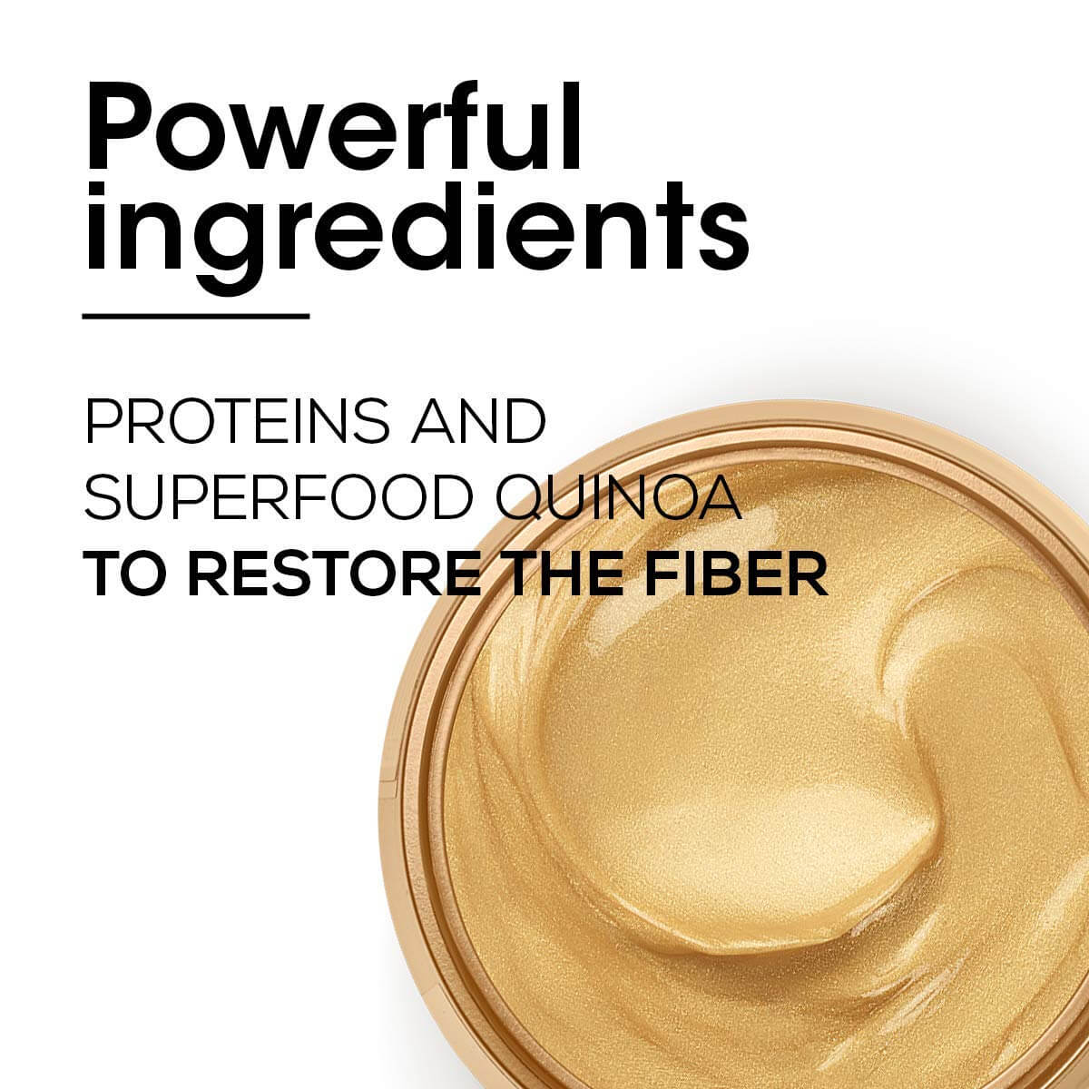 - This professional mask for thick, damaged hair is infused with gold quinoa and protein.