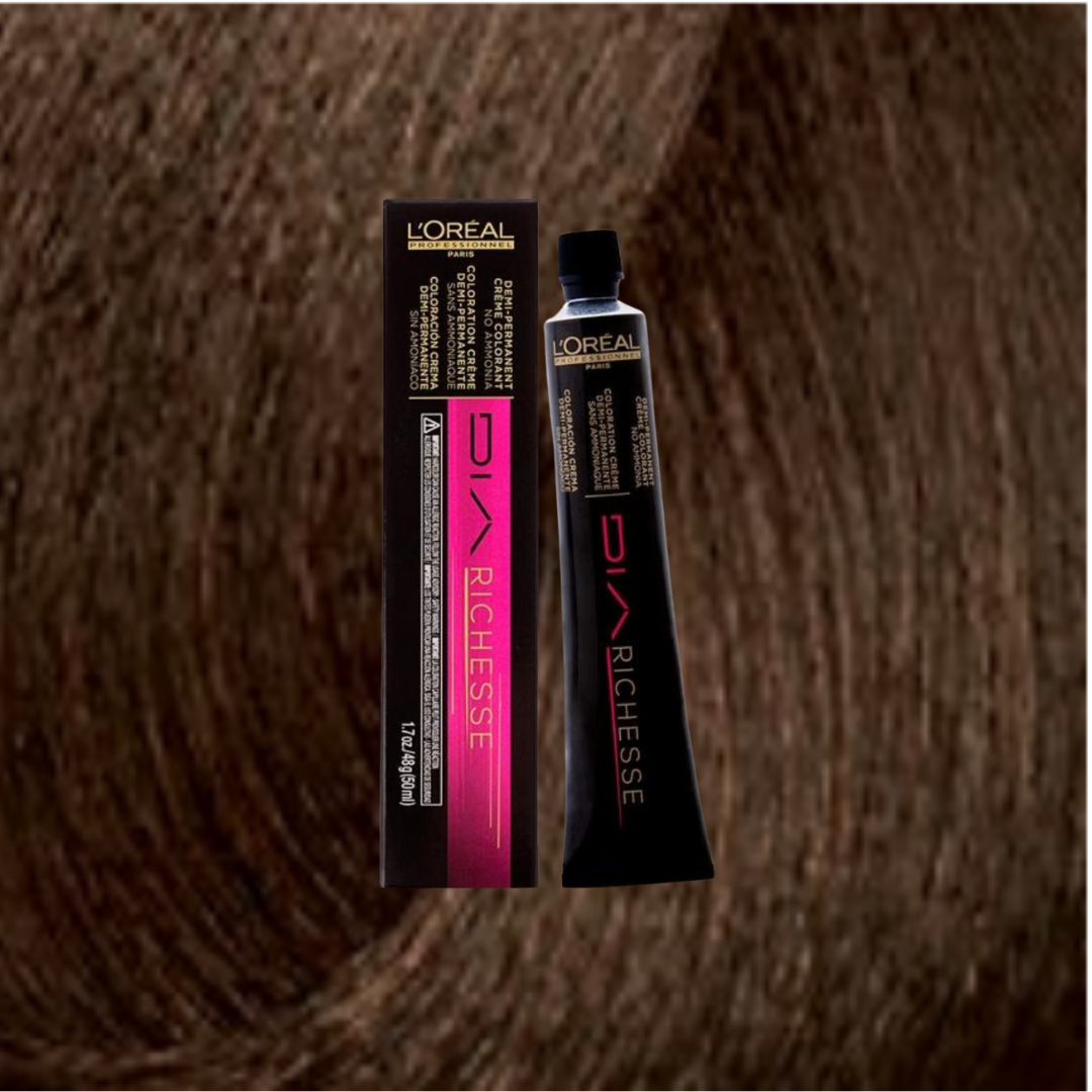 DIA Richesse is a rich demi-permanent crème hair color formulated with advanced alkaline technology to create deep, rich tones and exceptional softness. L'Oréal Professionnel beautiful portfolio offers over 70 professionally formulated shades to produce any desired result with a shiny, reflective finish.