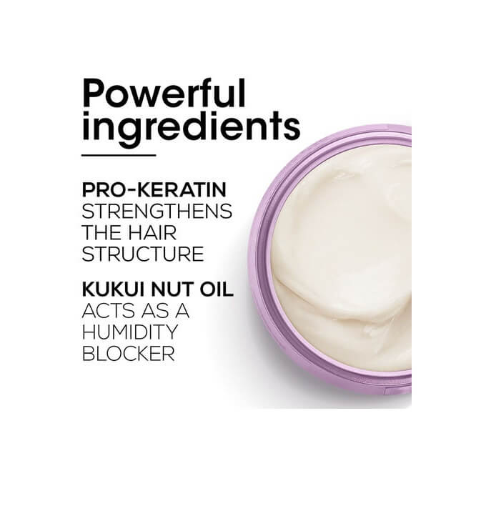 This luscious smoothing hair mask nourishes, smoothes and protects your hair fibers against humidity.