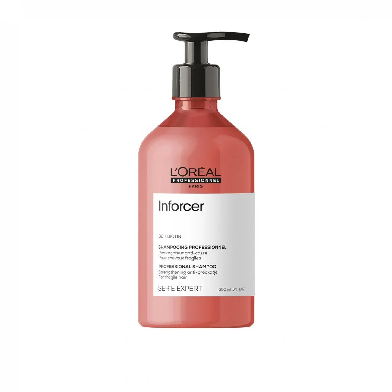 Treat fragile hair to the benefits of L'Oréal Professionnel Serie Expert Inforcer Shampoo; a lightweight formula that works to strengthen and protect from root to tip.