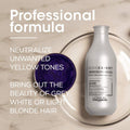 Showcase the beauty of grey, white or light blonde hair with our number one colour clarifying purple shampoo. The neutralising system, enriched with magnesium and anti-yellowing agents, counteracts unwanted brassy tones.