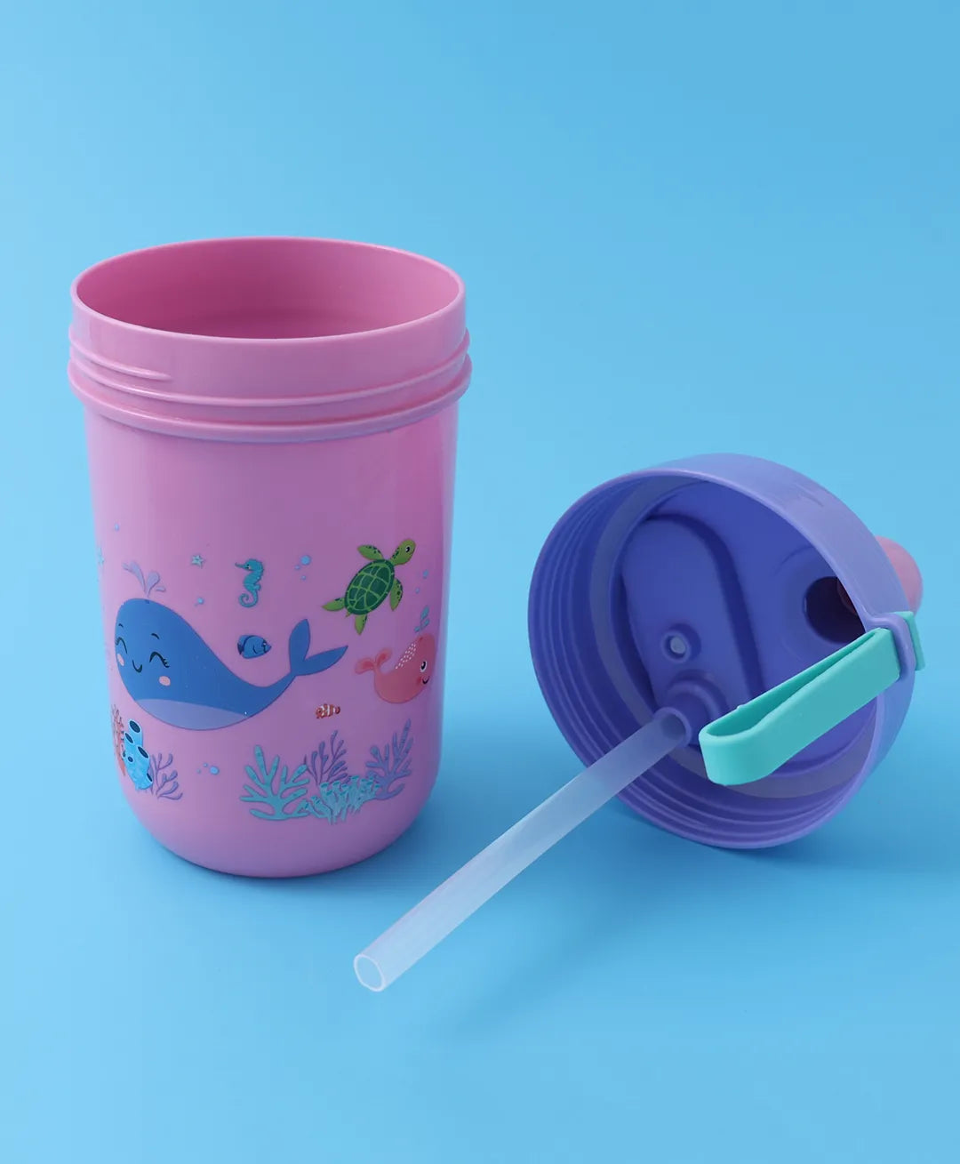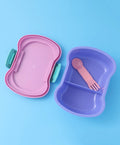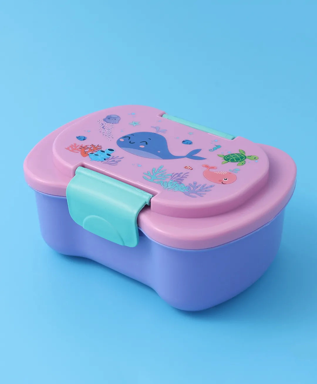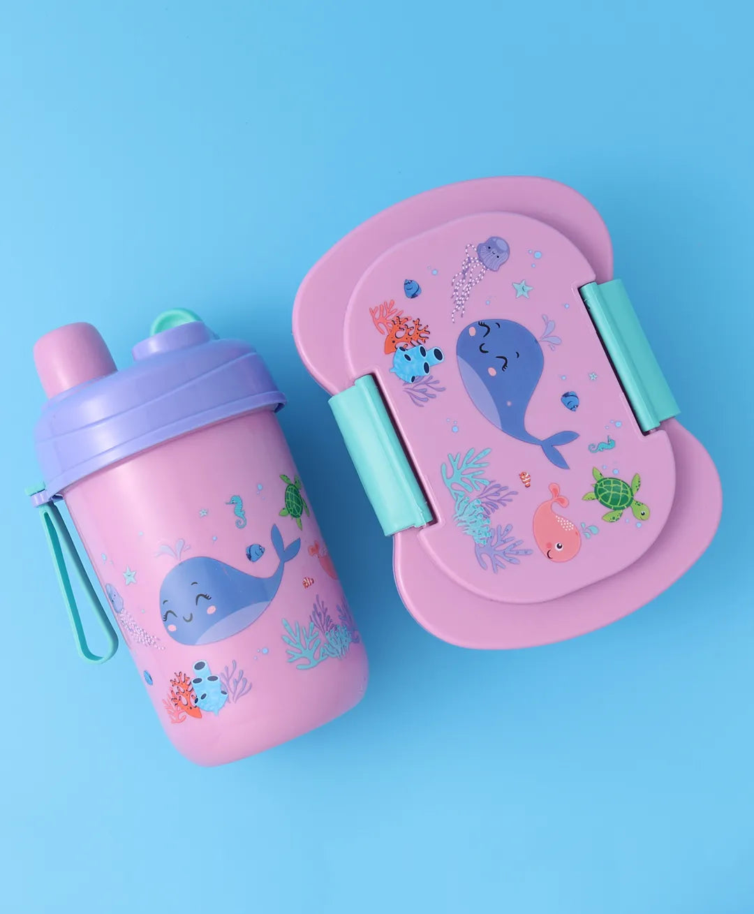 Pink Sea Theme Lunch Box Set for Kids – 2 Compartments, Bottle, Utensils & Carry Strap