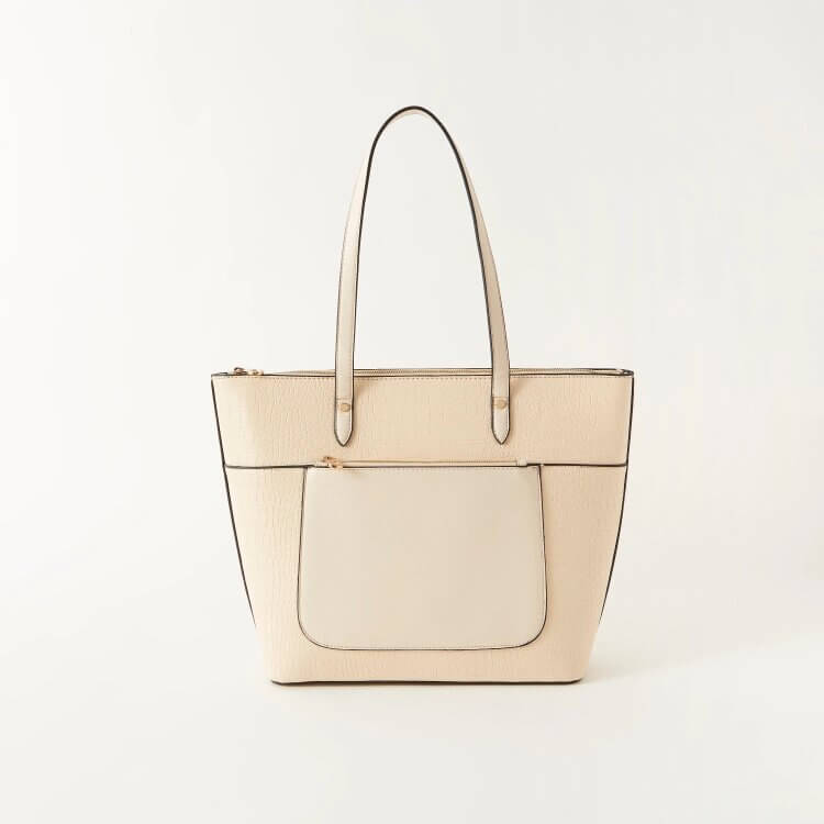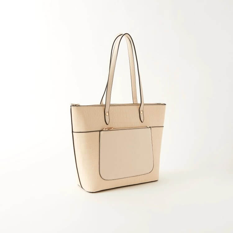 Sasha Animal Textured Tote Bag with Double Handle and Zip Closure White