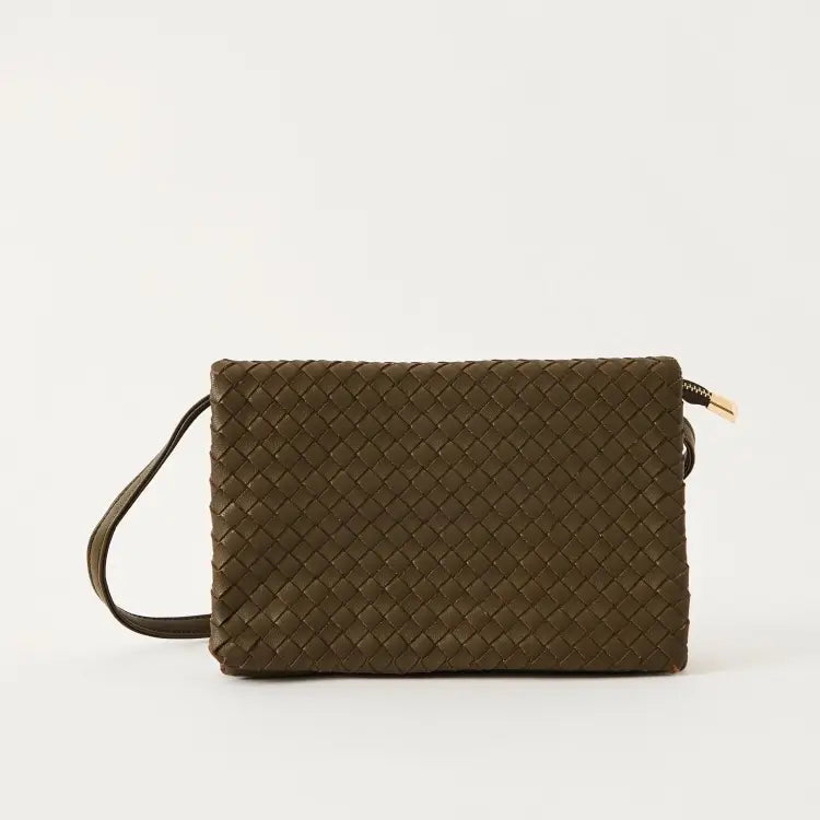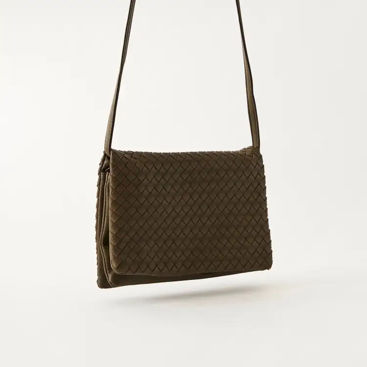 Sasha Basket Weave Baguette Bag with Sling Strap Greenish Brown