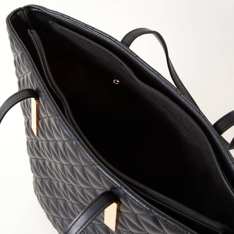 Step out in style with this charming shopper bag. It features dual top handles, zip closure and comes with ample storage space for your utility. The quilted pattern and its solid shades add to its appeal. Made of high-quality material, it can be spot cleaned.
