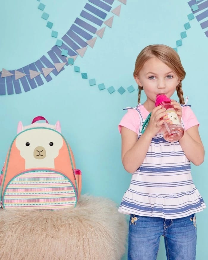 A big step-up from a sippy cup, our cute straw bottle helps ease the transition to a “big kid cup” with the protection of a flip-top lid. Featuring cute Zoo characters and a handy grab strap, it’s a toddler must-have for water, juice or whatever your little one likes to drink.