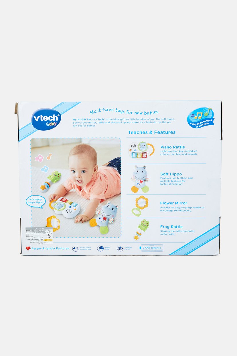 In this pack, you will find a cute cuddly teddy bear-like hippo with colorful patterns and crinkle sounds and a textured teether for babies designed for sensory play and soothing your baby's gums
