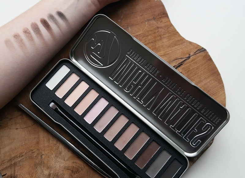 W7's Mighty Mattes eye shadow palette contains 12 matte eye shadow shades. The colours range from natural, peachy nudes to chocolate browns that are long lasting and highly pigmented. The shades can be used as transition colours or even as a blendable base.